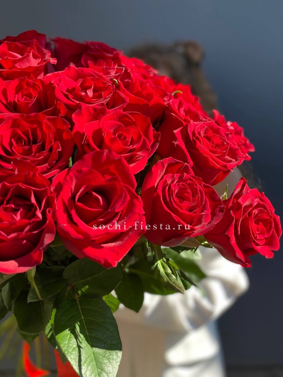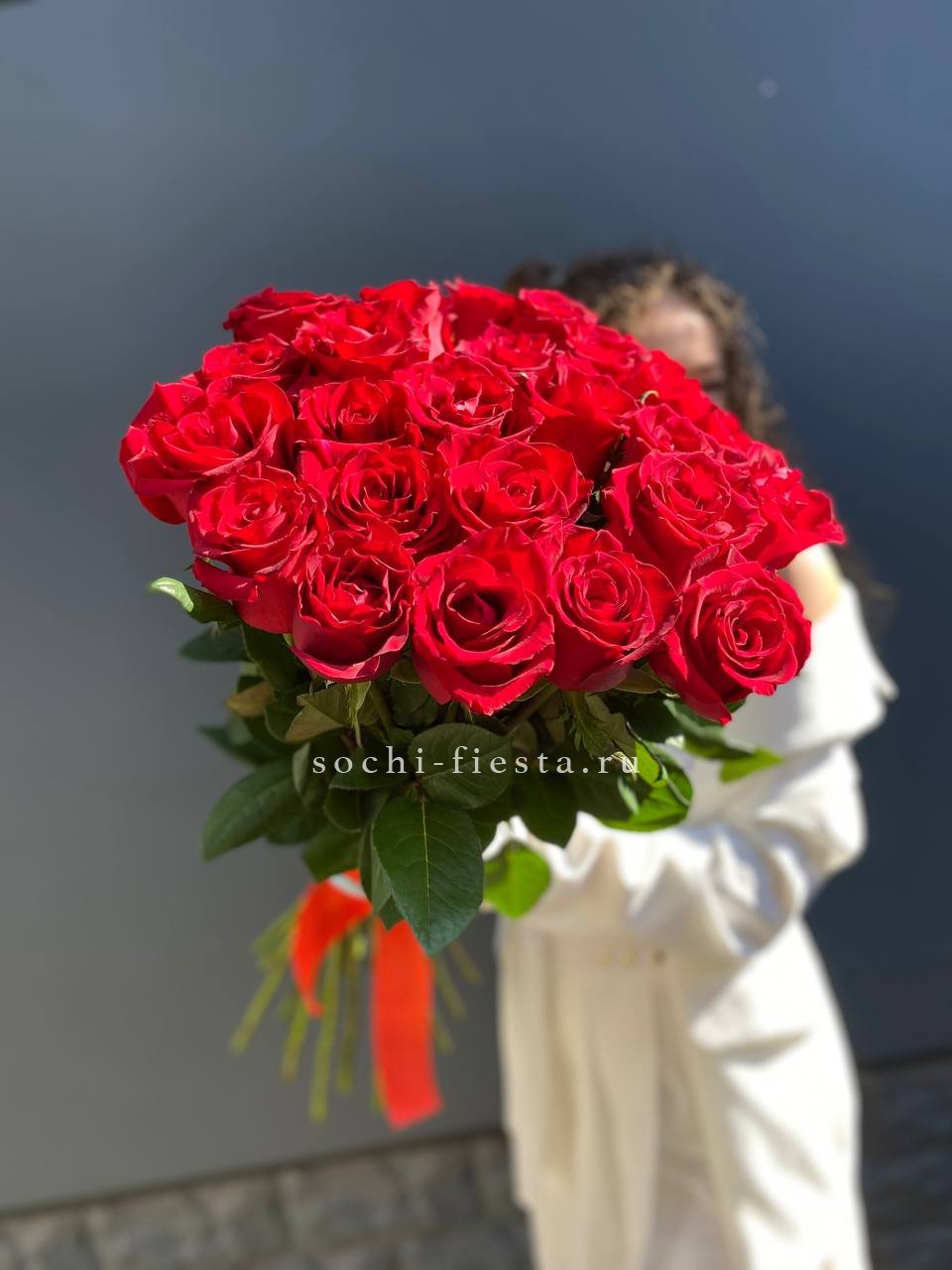 Насыщенный алый цвет роз традиционно ассоциируется с глубокой страстью, сильной любовью и восхищением. Такой подарок несет в себе мощный эмоциональный посыл и предназначен для создания драматического и торжественного эффекта.
