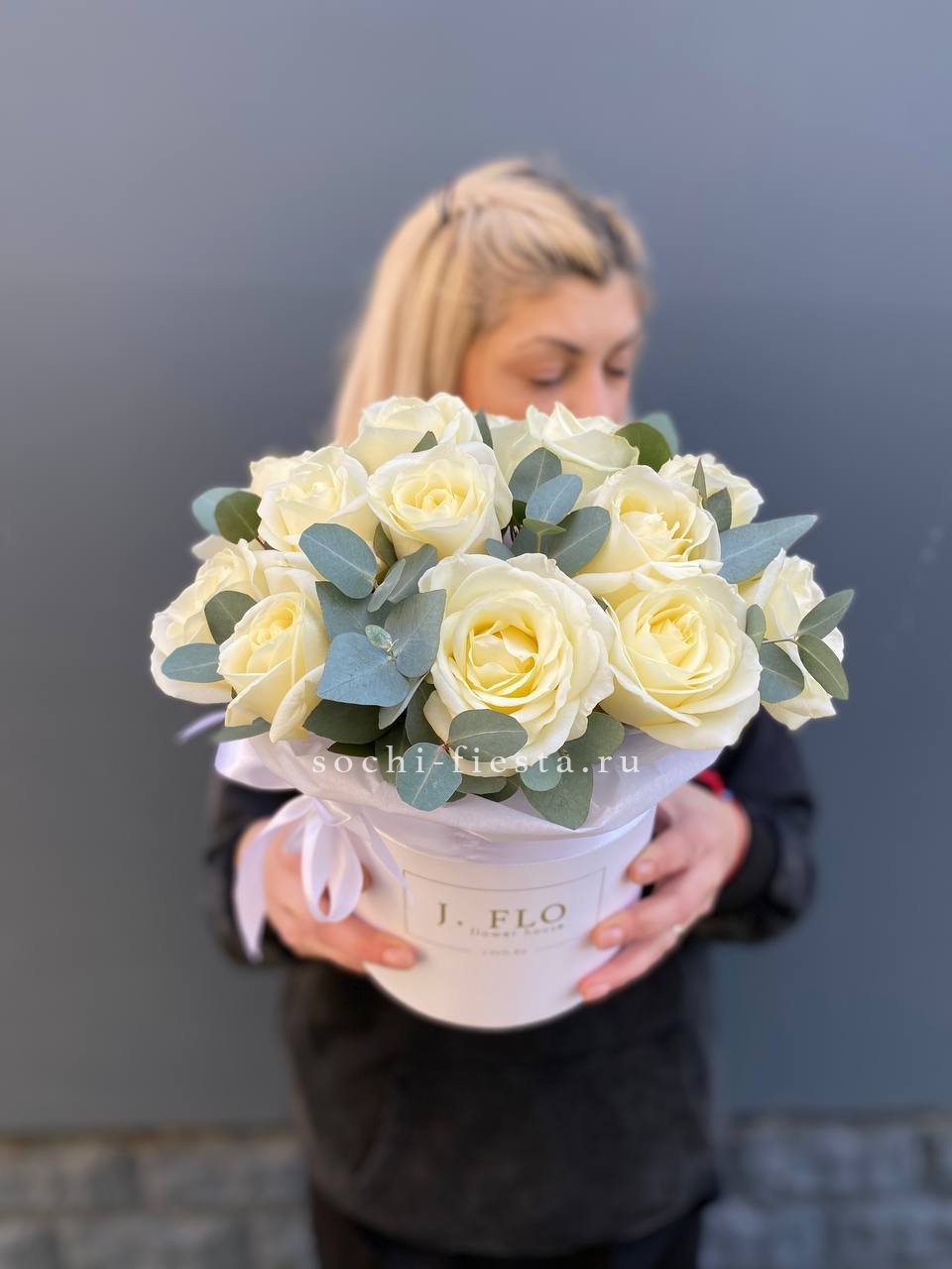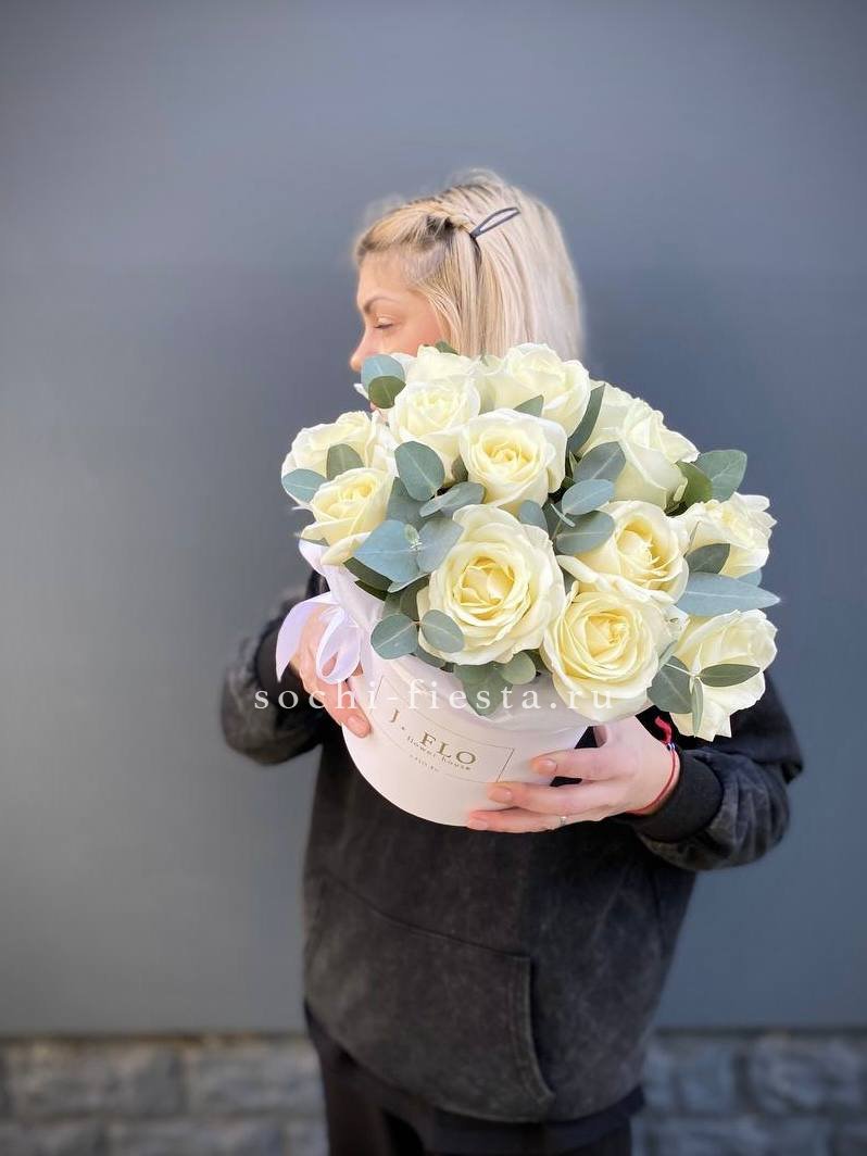 Белоснежные бутоны собраны в лаконичную форму с воздушной текстурой упаковки. Чистота линий и свежесть делают композицию универсальной для любого момента.