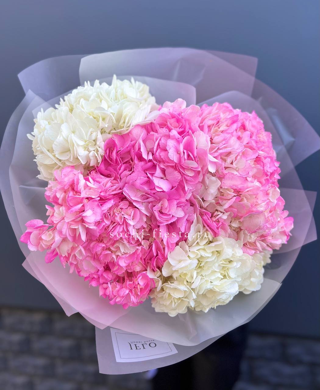 гортензия - 3 шт., лента, дизайнерская упаковка.
