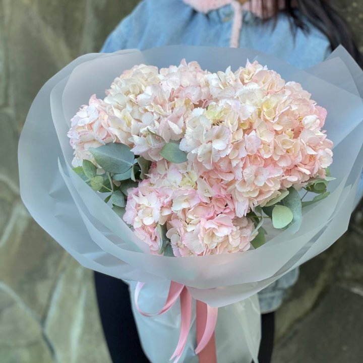 Гортензия — это декоративное кустарниковое растение, известное своими крупными, пышными соцветиями и богатой палитрой оттенков. Она широко используется во флористике благодаря своей эффектности и продолжительному цветению. Гортензия символизирует благодарность, искренность и гармонию. Ее крупные цветочные кисти делают ее популярным элементом композиций и букетов.