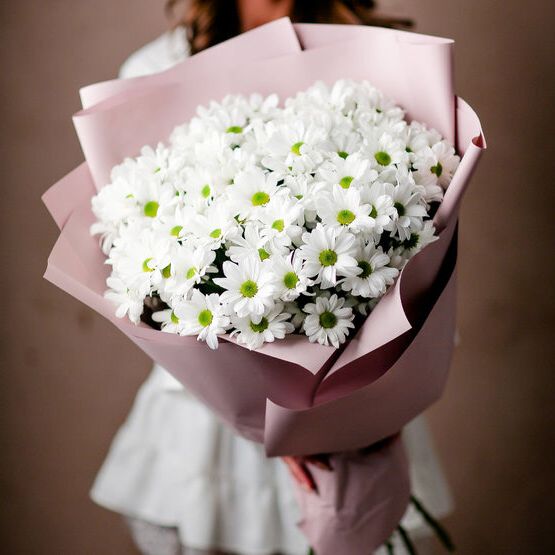 Одиннадцать веток кустовой хризантемы с множеством бутонов разной степени раскрытия. Воздушная композиция долго сохраняет свежесть и радует обилием мелких соцветий в лаконичной упаковке.