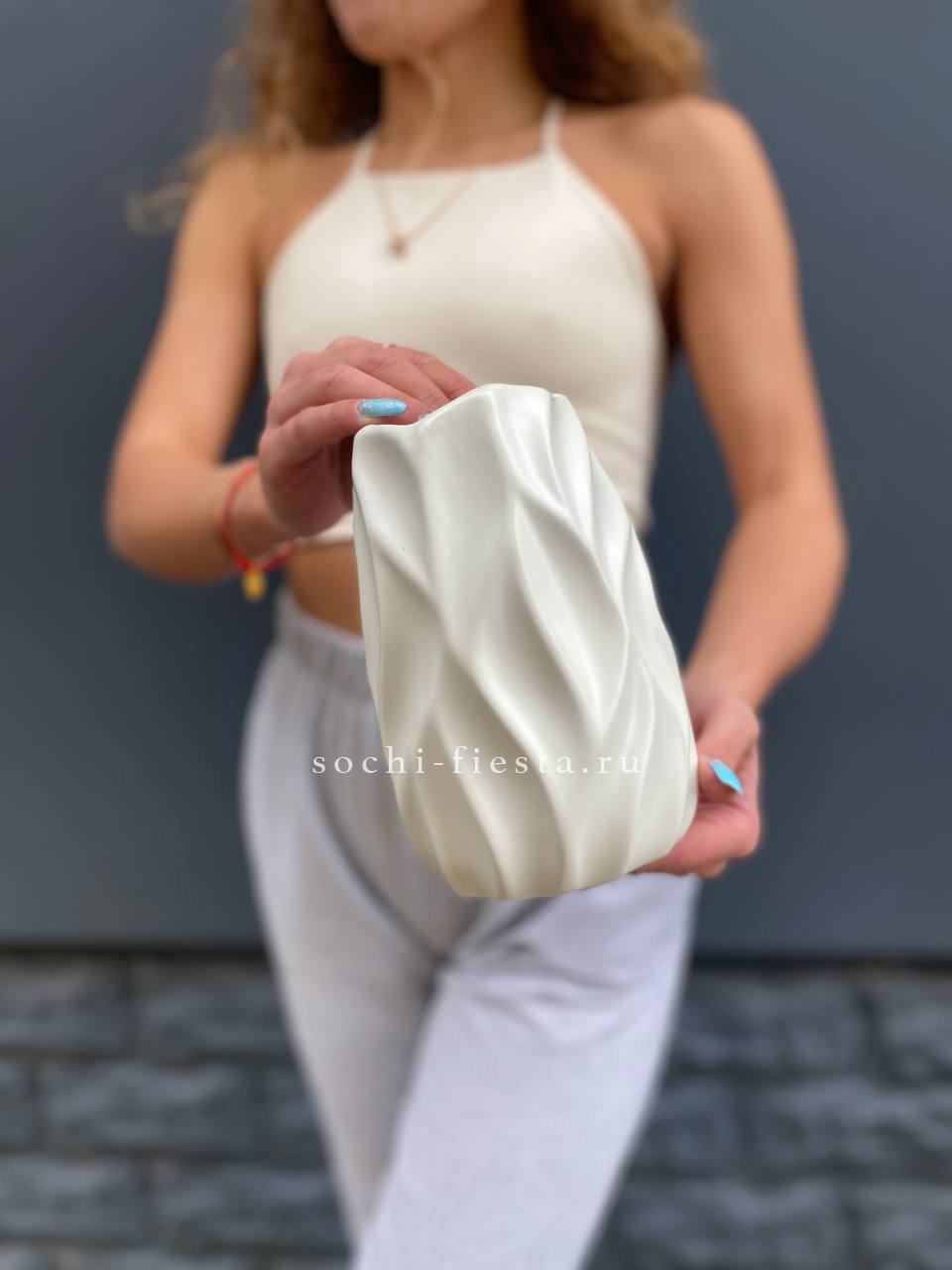 особенностью этой модели является лаконичный внешний вид. Благодаря универсальному цвету, она гармонично впишется и добавит уюта в пространство любой комнаты. В нее можно наливать воду под живые цветы или ставить сухоцветы. Благодаря широкому горлышку она проста в уходе, легко чистится и моется. Материал: керамика. Цвет: белый, серый. Размер: 13х20 см (ШВ). Диаметр: 10,5 см. Объем: 1500 мл.