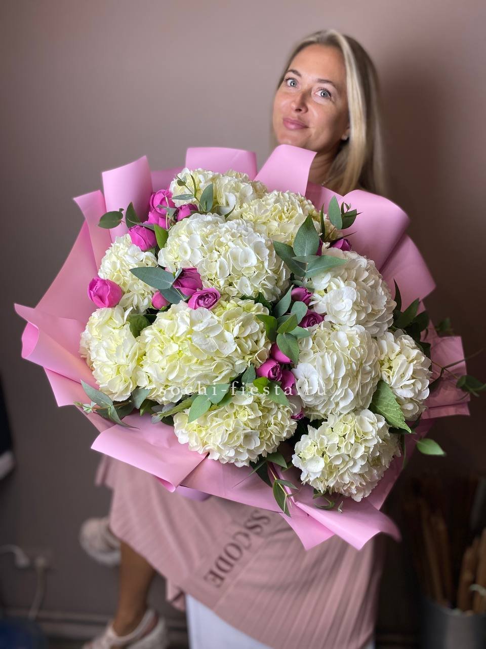 Лаконичная шляпная коробка — идеальный акцент, который подчеркивает пышность гортензий. Она станет стильным украшением любого интерьера, от классики до лофта. Тот случай, когда упаковка так же безупречна, как и само наполнение.