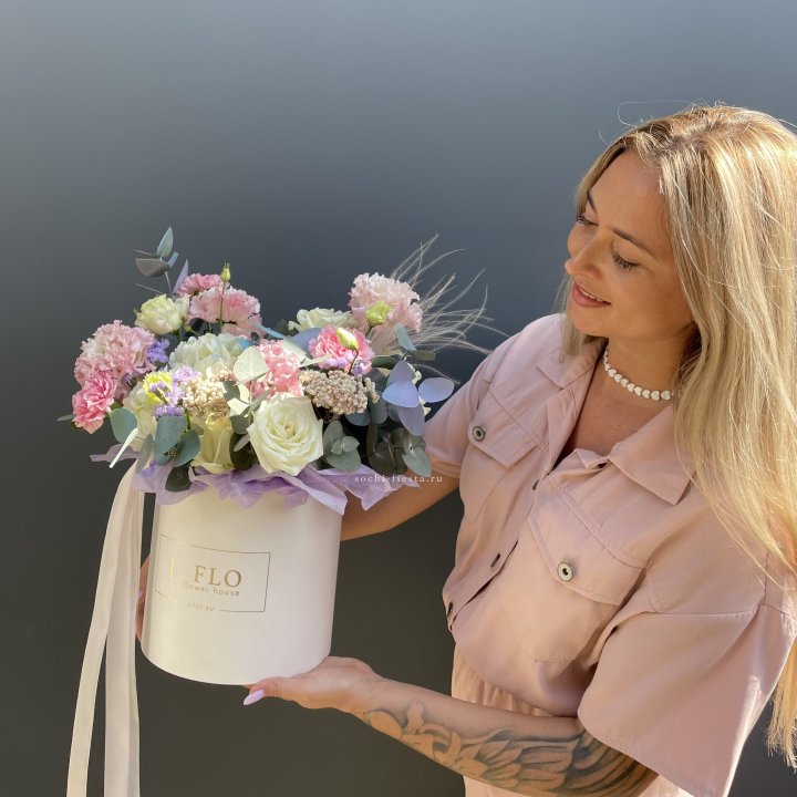 Шляпная коробка в студии Грозные закрепилась как практичный формат для корпоративных и семейных подарков. Композиция с флористической губкой, готовая к дарению без вазы. Удобно для офиса и для получателя, не требует ухода в первые 3-5 дней.