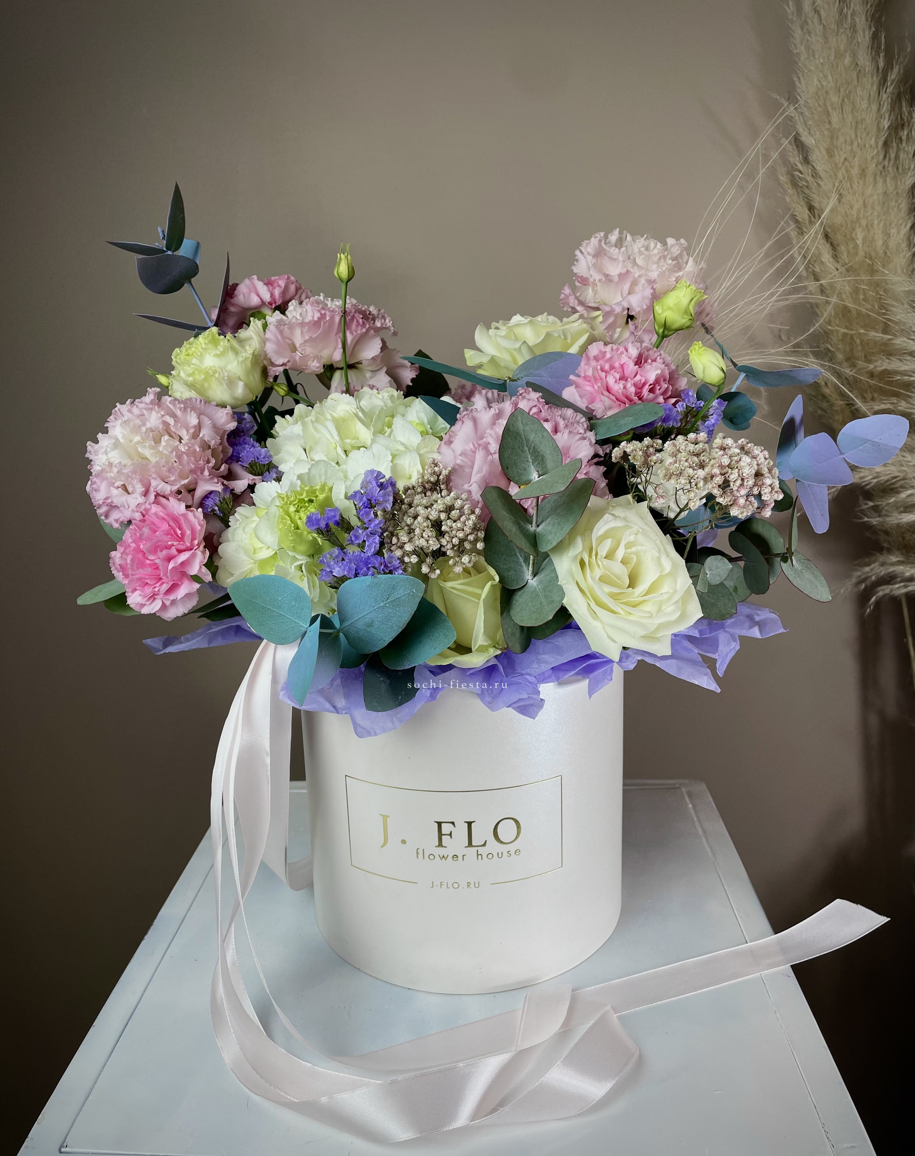 орхидея цимбидиум, эвкалипт, цилиндр, оазис.