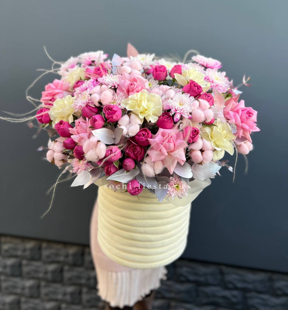 Цветочная композиция собрана с большим вкусом, взаимодействие с заказчиком с момента создания заказа и до получения цветов получателем, доставка к оговорённому времени. Всё супер!! ♥️Спасибо огромное ...