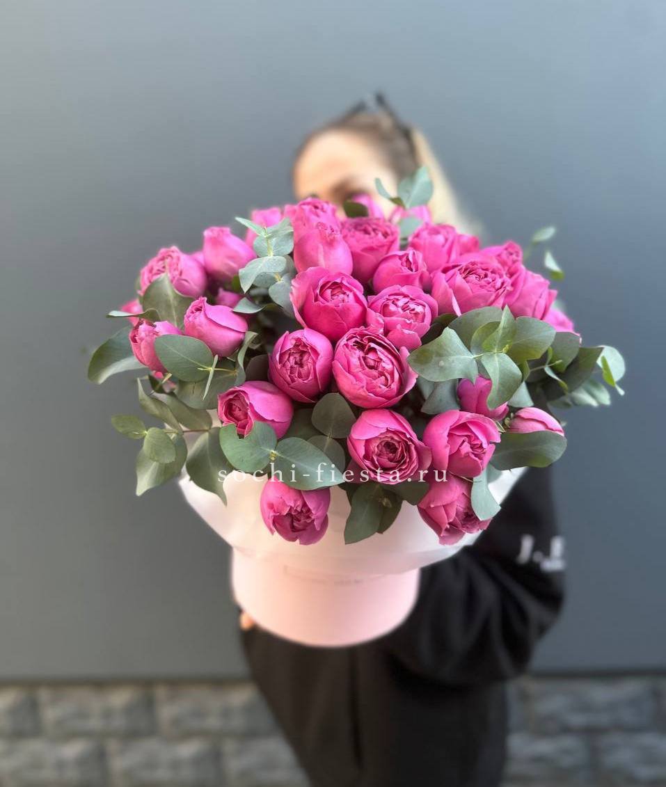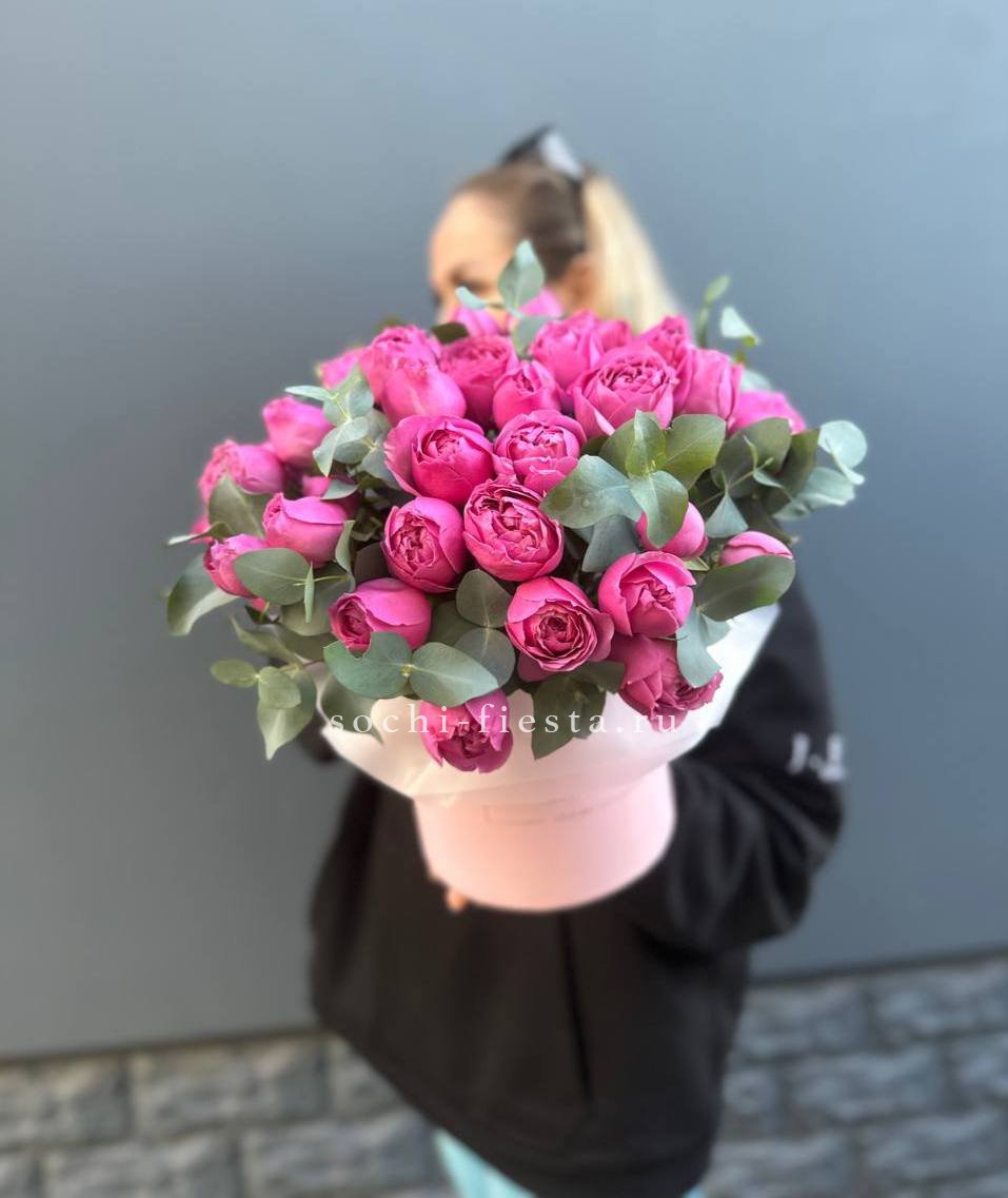 пионовидные кустовые розы бомбастик, гортензия, оазис, тишью, лента.