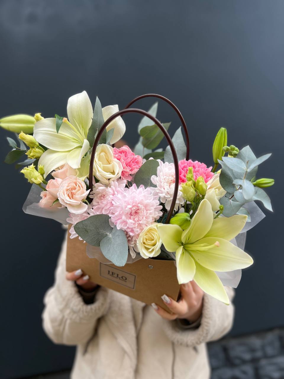 Погрузитесь в мир изысканных ароматов! Эта композиция — настоящее произведение искусства, где благородные лилии встречаются с нежными розами и воздушной эустомой. Свежий эвкалипт добавляет особые нотки. Это не просто букет, а стильный акцент, который наполнит пространство красотой и уютом. Идеально для выражения благодарности или глубокой симпатии.