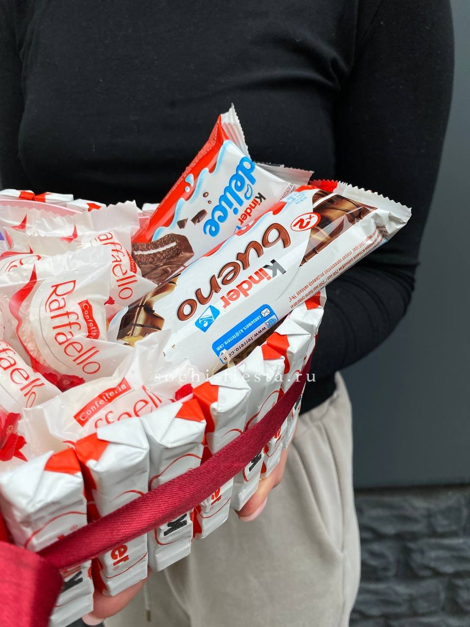 конфеты Рафаэлло- 7шт., киндер шоколад, Bueno, Delice (киндер ломтик), шоколадной яйцо Киндер, коробка.