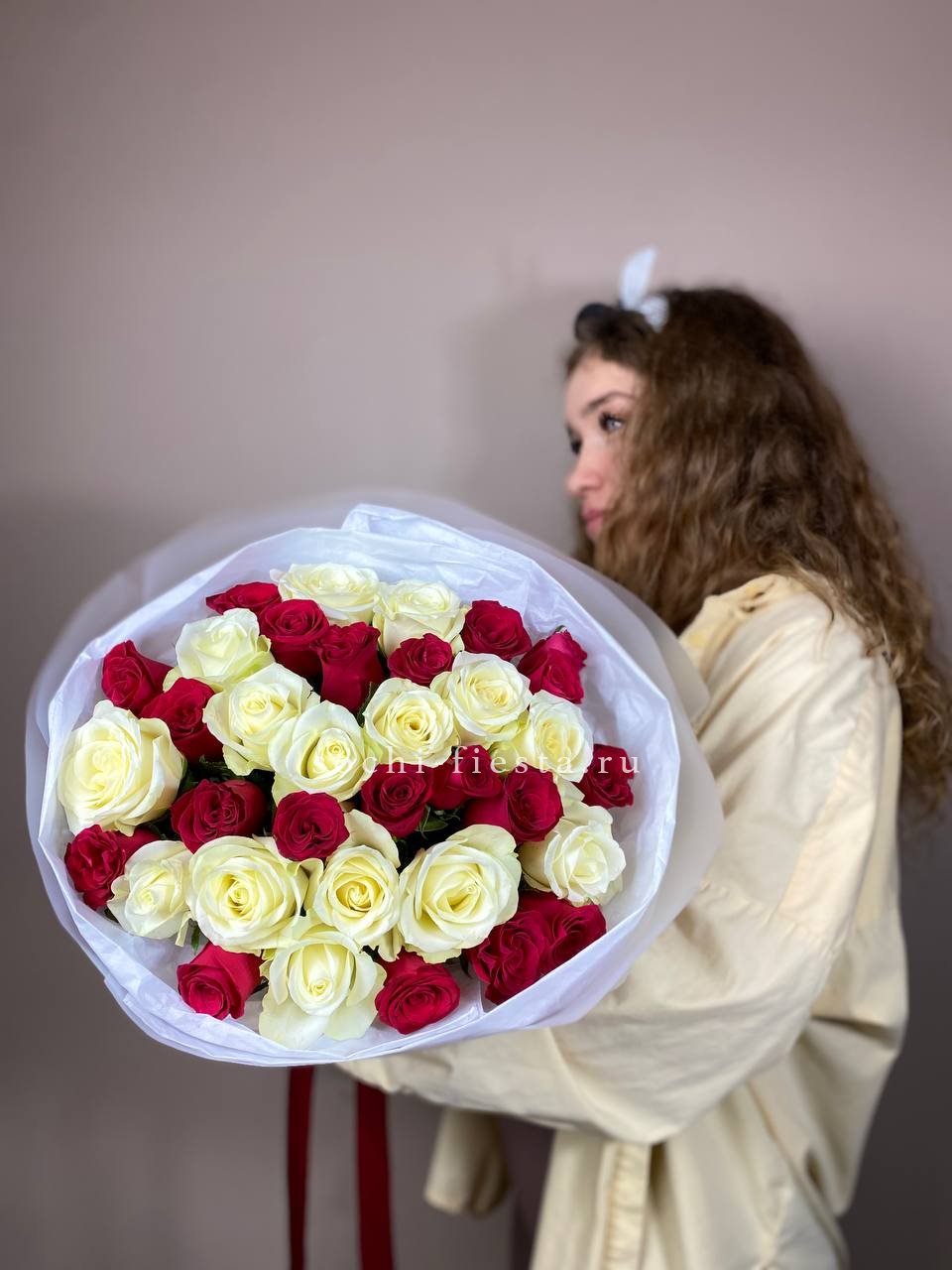 Для заказа товара "Букет из красных белых 35 роз" с доставкой в Грозные нажмите в корзину