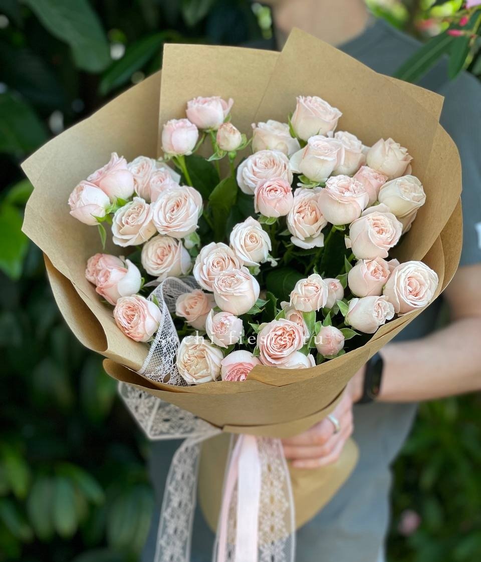 пионовидные розы сорта Бомбастик - 201 шт., дизайнерское оформление По желанию заказчика, композицию можно оформить в корзину.